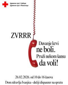 Redovna februarska akcija dobrovoljnog davanja krvi biće realizovana 26.02. od 10 do 16 č u Domu zdravlja Ivanjica – dečiji dispanzer na spratu.